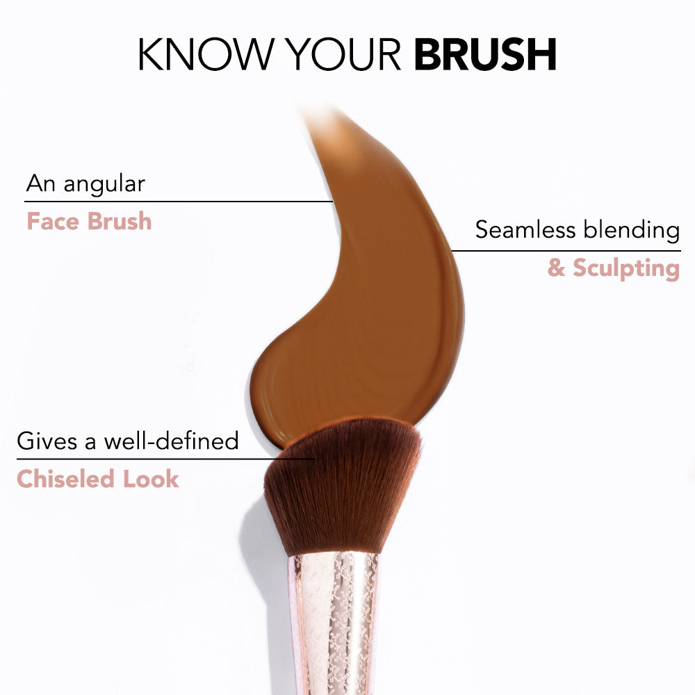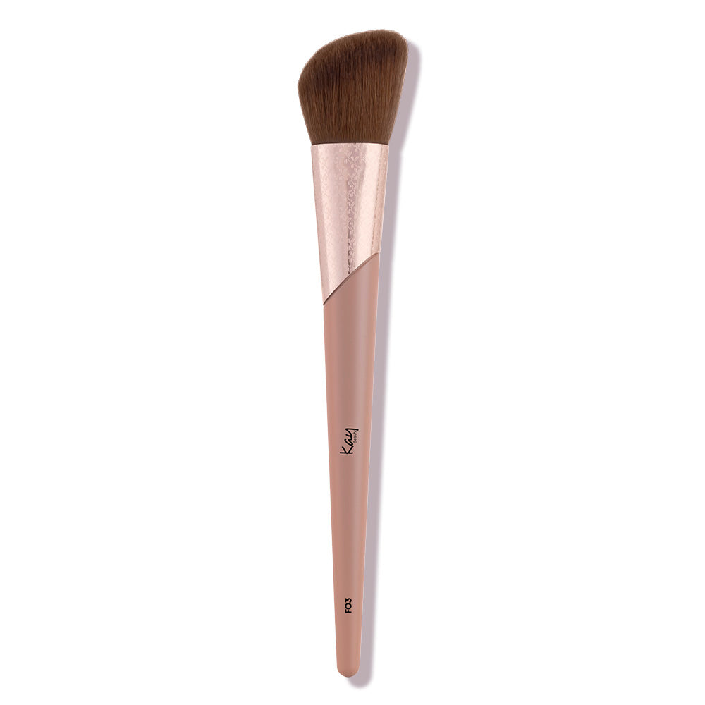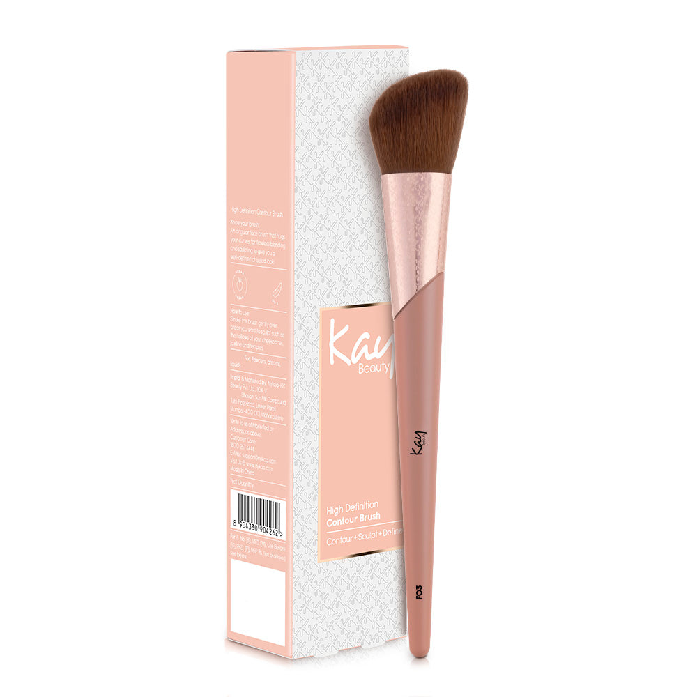 "The Kay Beauty high defination contour brush is an angular face brush that hugs your curves for seamless blending and sculpting to give you a well-defined chiseled look