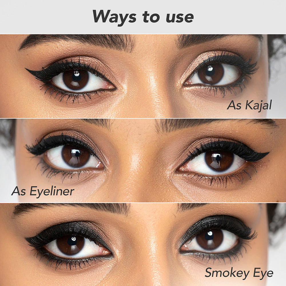 The Kay Beauty Smudgeproof Jet Black Gel Kajal combines the precision of a pencil and the bold finish of a gel that stays put 24 hours. Rising mercury levels has got nothing on your eye look anymore thanks to the kajal's waterproof and smudgeproof formula. It glides on smoothly and delivers a high impact gel finish. From clean lines to a crisp cat eye, create subtle, dramatic or graphic eye looks with absolute ease.