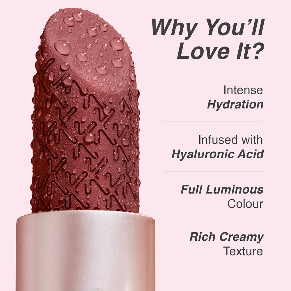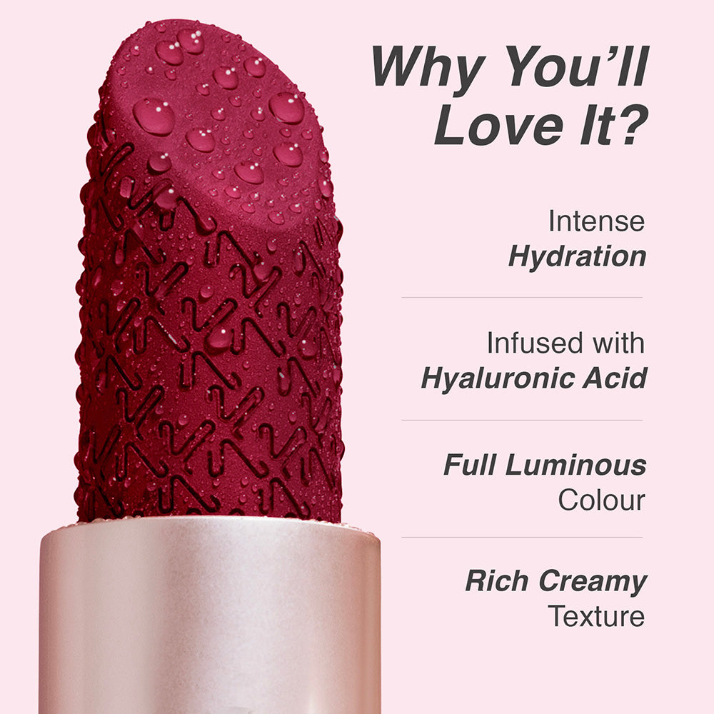 - Hyaluronic Acid ensures lasting hydration for supple, smooth lips