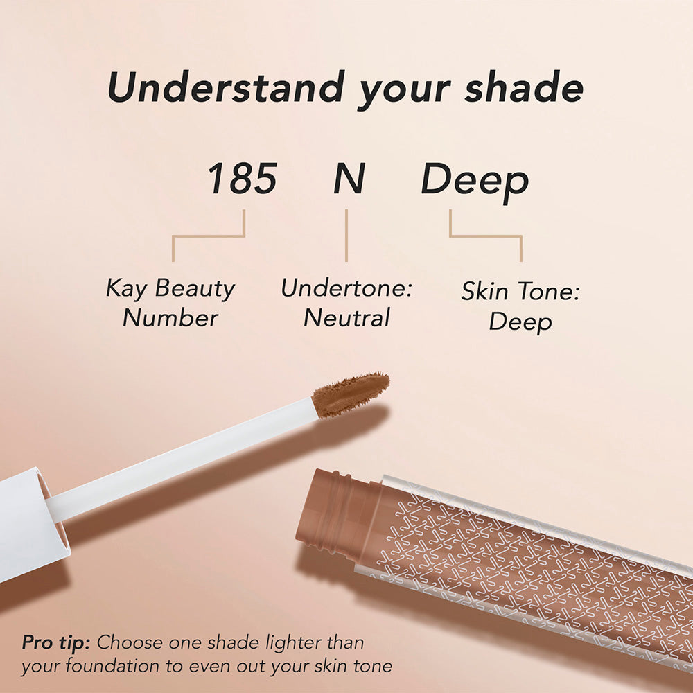 Whether you need to cover dark circles, sculpt your face or highlight, the Kay Beauty HD Liquid Concealer has got you covered. The high hydrating formula is designed to give you a creaseless, seamless HD matte finish that lasts all day long. You can effortlessly build your coverage from medium to high.